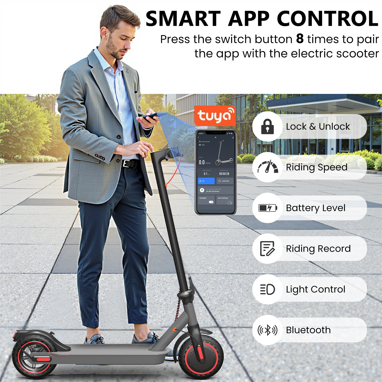 Electric Scooter for Adults, Aluminum Frame 19MPH & 20° Hill Climb, 15-21 Mile Range with Cruise Control, Dual Braking System & 8.5" Solid Tires, 300LB Bearing Foldable Commuter Scooter for Teen Adult