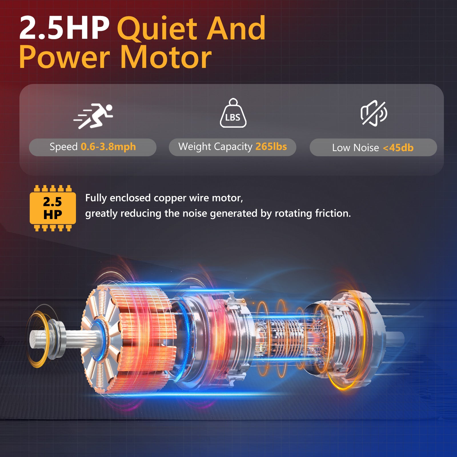 【Powerful & Silent】AIRHOT Treadmill is equipped with a high-powered 2.5HP motor that provides a strong and reliable performance. With a maximum weight capacity of 265 pounds, it can easily accommodate users of different sizes. What sets it apart is its whisper-quiet operation, producing less than 45 decibels of noise. Say goodbye to noisy workouts and enjoy a peaceful exercise experience in the comfort of your own home.